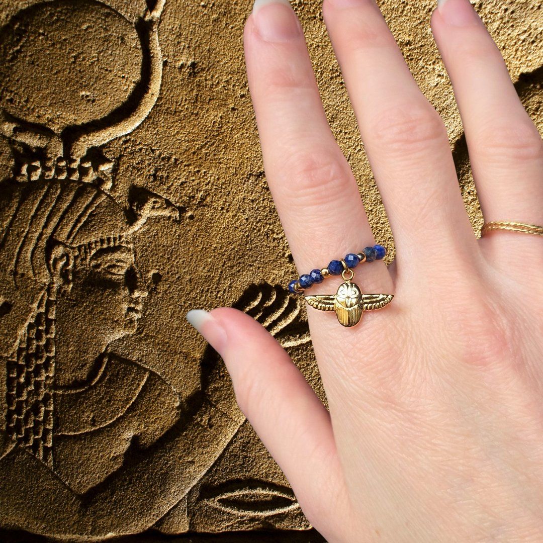 Pierre d'un bleu profond constellé de pyrite dorée, le lapis-lazuli est l'un des symboles les plus puissants de l'Egypte ancienne : royauté, sagesse, protection divine et vérité éternelle.