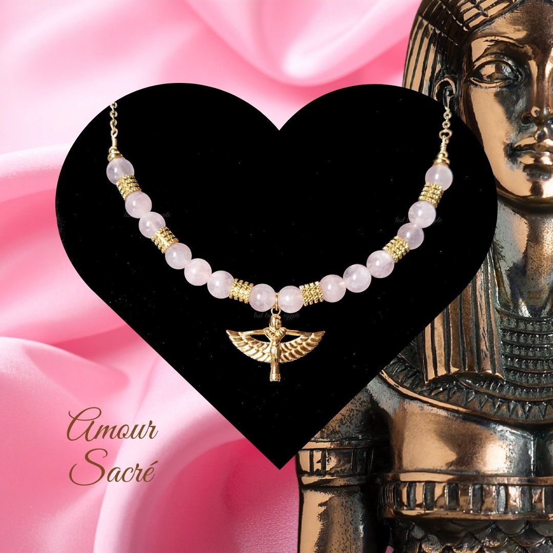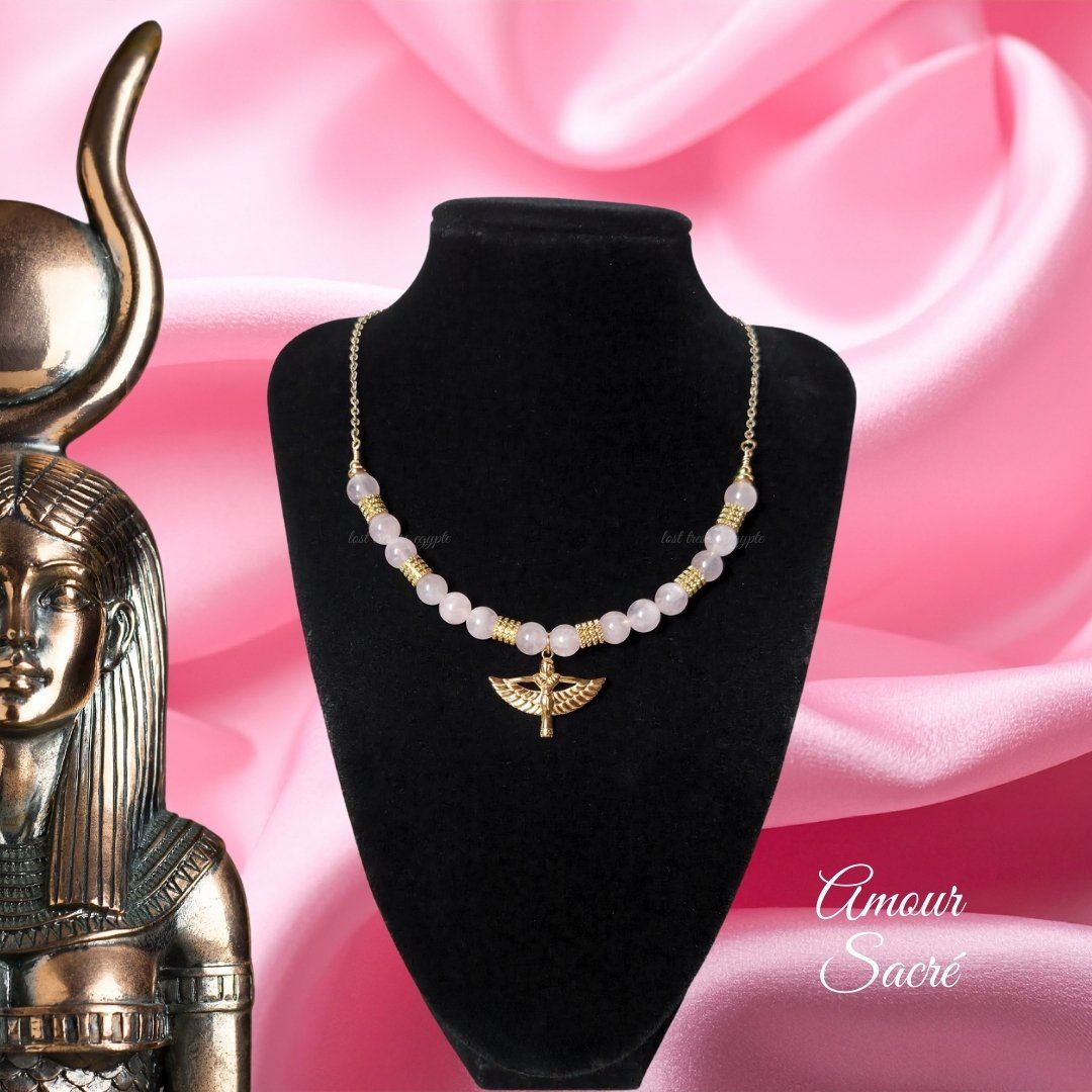 Ce collier unique est inspiré de la déesse Isis, symbole de protection et de puissance féminine.