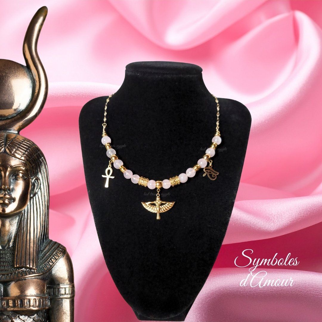 Ce collier unique est inspiré de la déesse Isis, symbole de protection et de puissance féminine.